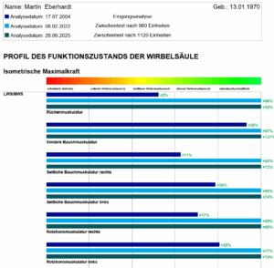 Trainingsmodus: dynamisch segmentales Training über die maximal mögliche Bewegungsamplitude (Full Range of Motion) an den FPZ Systems für die Wirbelsäule der Firma Schnell.